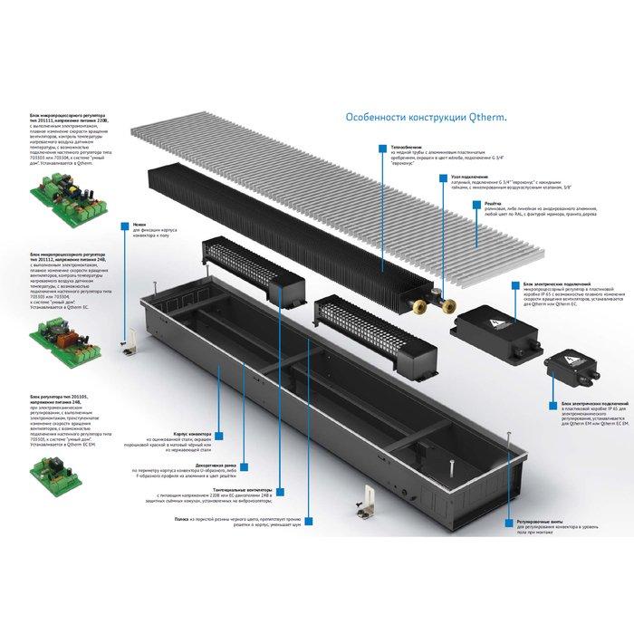 Внутрипольный конвектор длиной 2,1 м - 3 м Varmann Qtherm 300x110x2500